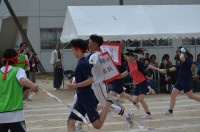体育祭 2025年10月10日 16時30分 校内活動 台風の影響も無く、秋空のもと全ての種目を無事実施することができました。今年度は「~中天の央~空の真ん中最も輝く太陽のように体育祭を盛り上げよう」というテーマで行われ、赤、緑、青の三色のチームに分かれての競技で、どの色も見事な競技、応援で大変な盛り上がりをみせました。総合優勝は「赤組」という結果となりました。